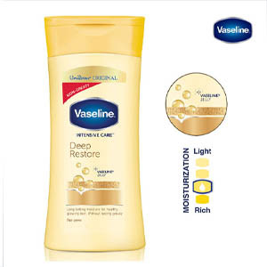 ভ্যাসলিন আপনার জন্য নিয়ে এসেছে ইনটেনসিভ কেয়ার ডিপ রিস্টোর বডি লোশন - ভ্যাসলিন জেলি এবং গ্লিসারিনের মাইক্রো-ড্রপলেটের একটি অনন্য মিশ্রণ যা আর্দ্রতা আটকে রাখে এবং এমনকি কঠোর শীতেও শুষ্ক ত্বককে নিরাময় করে। ভেসলিন ডিপ রিস্টোর লোশন দিয়ে আপনার ত্বকের যত্নের ব্যবস্থাকে পরবর্তী স্তরে নিয়ে যান, এটিকে নরম এবং মসৃণ রেখে।
